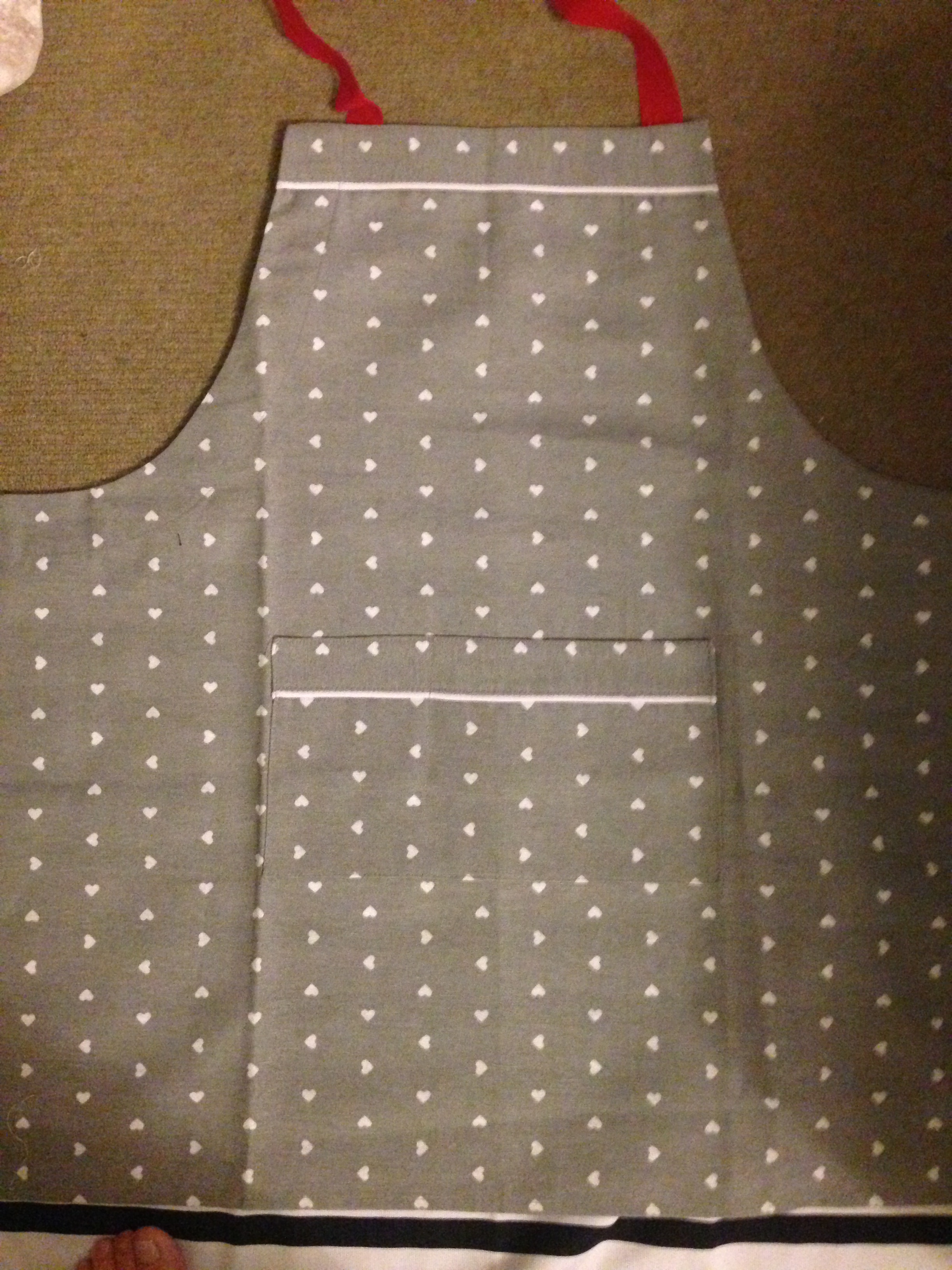 Delantal gris con corazones. Lo puedes personalizar con el nombre de quien quieras.