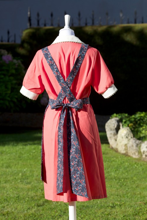 Uniforme color coral con delantal con motivos florales HOME&HOPE MADRID