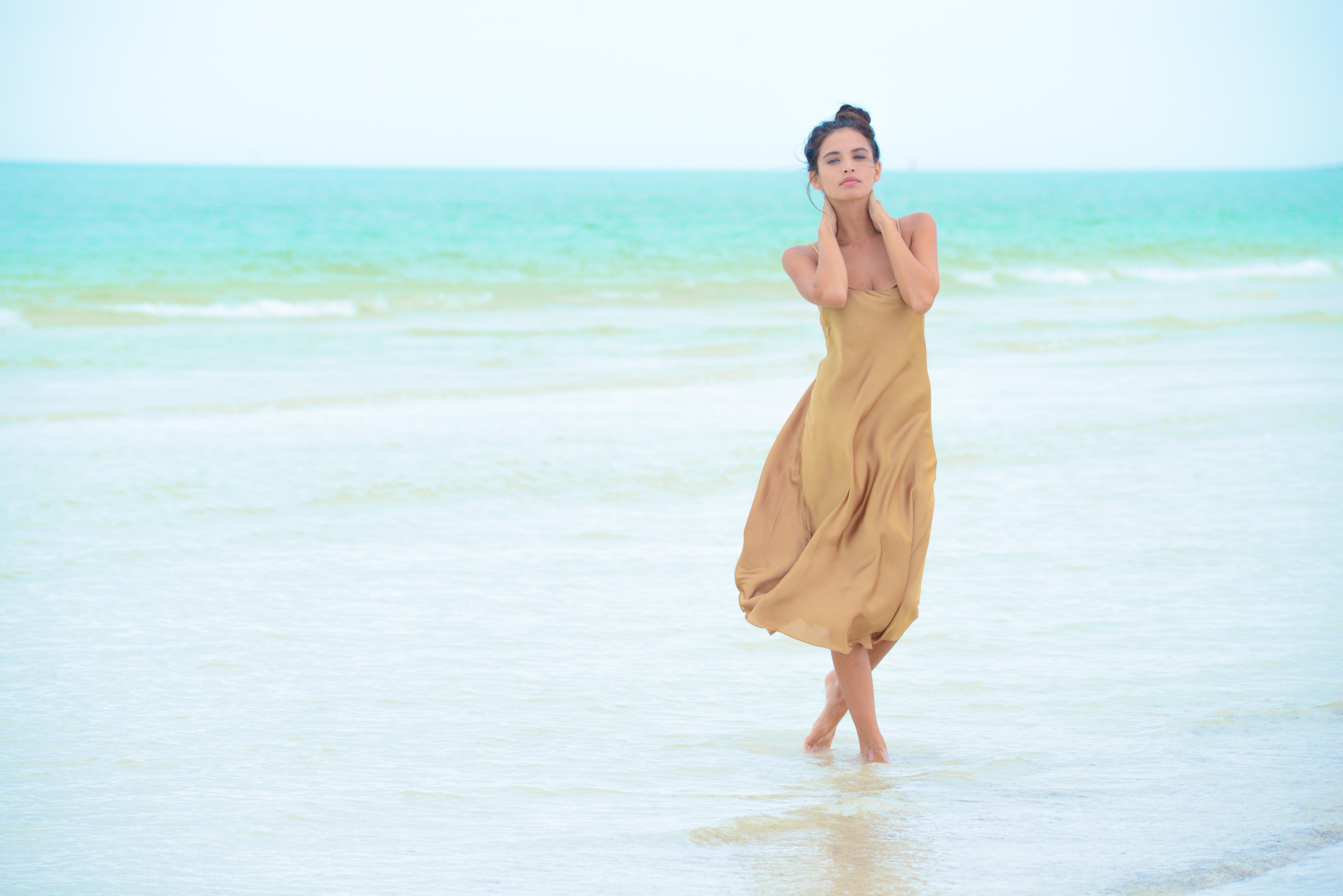 Camisón HOME&HOPE en color dorado, finos tirantes y corte al bies