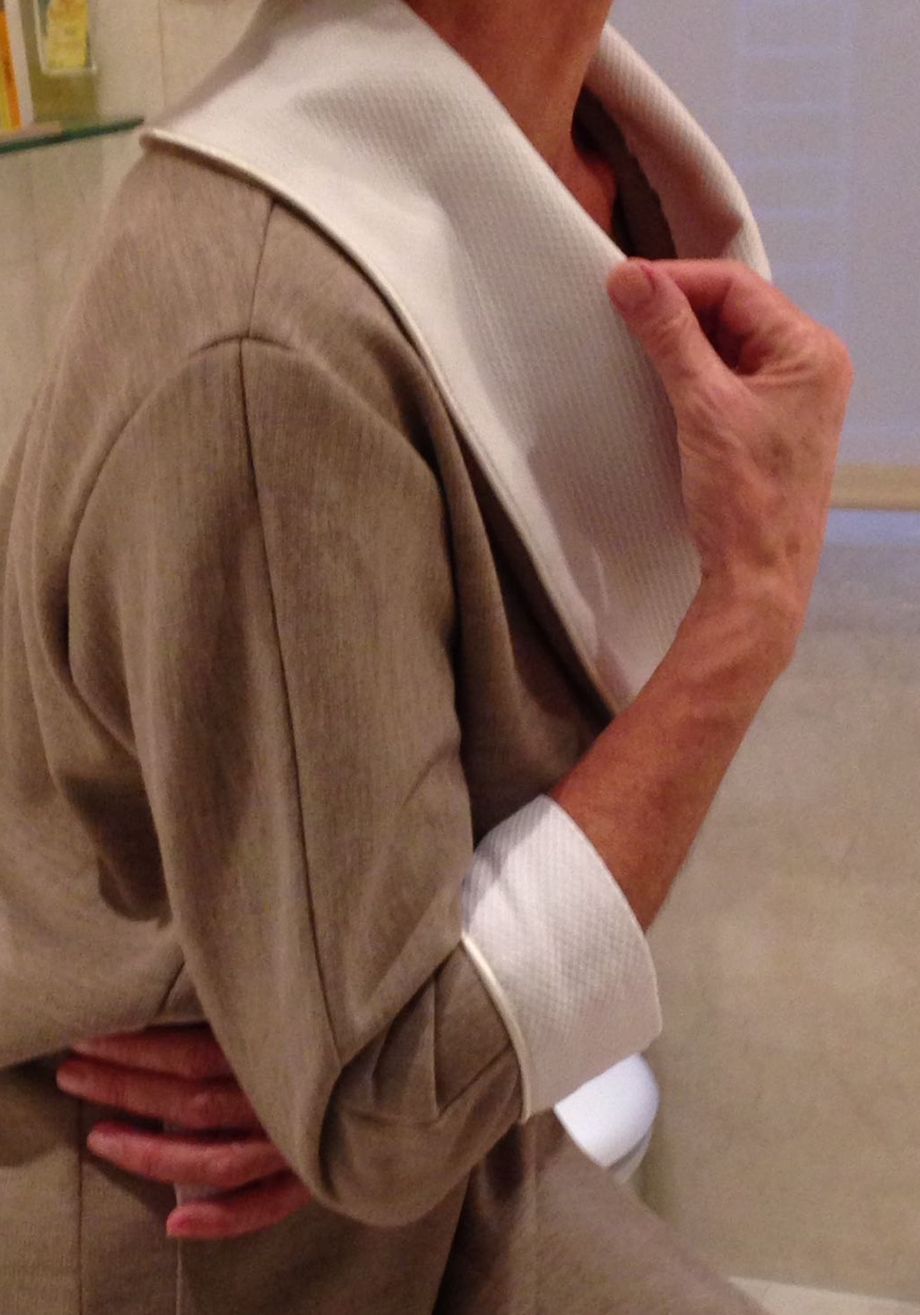 Bata de señora realizada en punto en tono beige y detalles en piqué HOME&HOPE MADRID