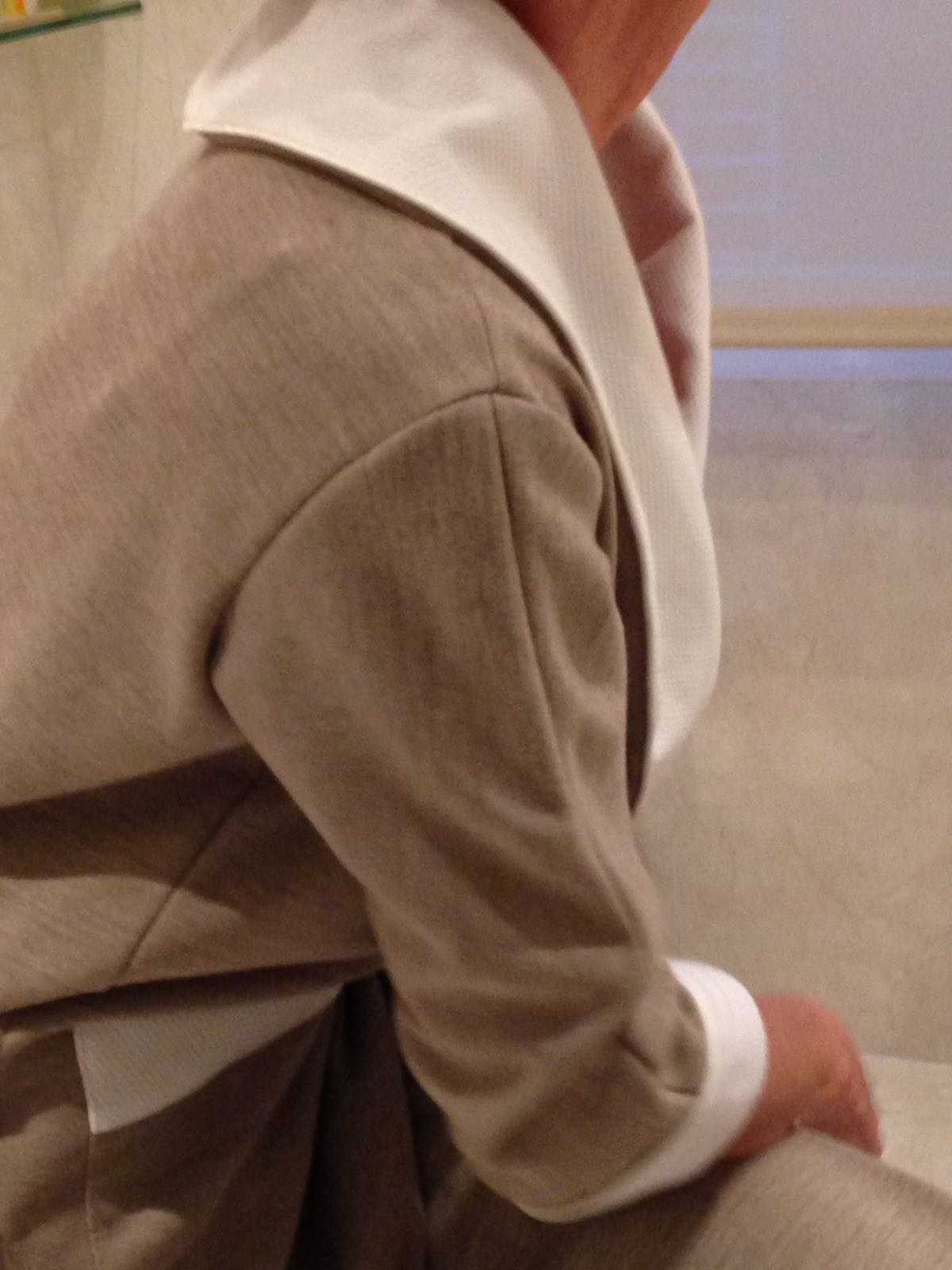 Bata de señora realizada en punto en tono beige y detalles en piqué HOME&HOPE MADRID