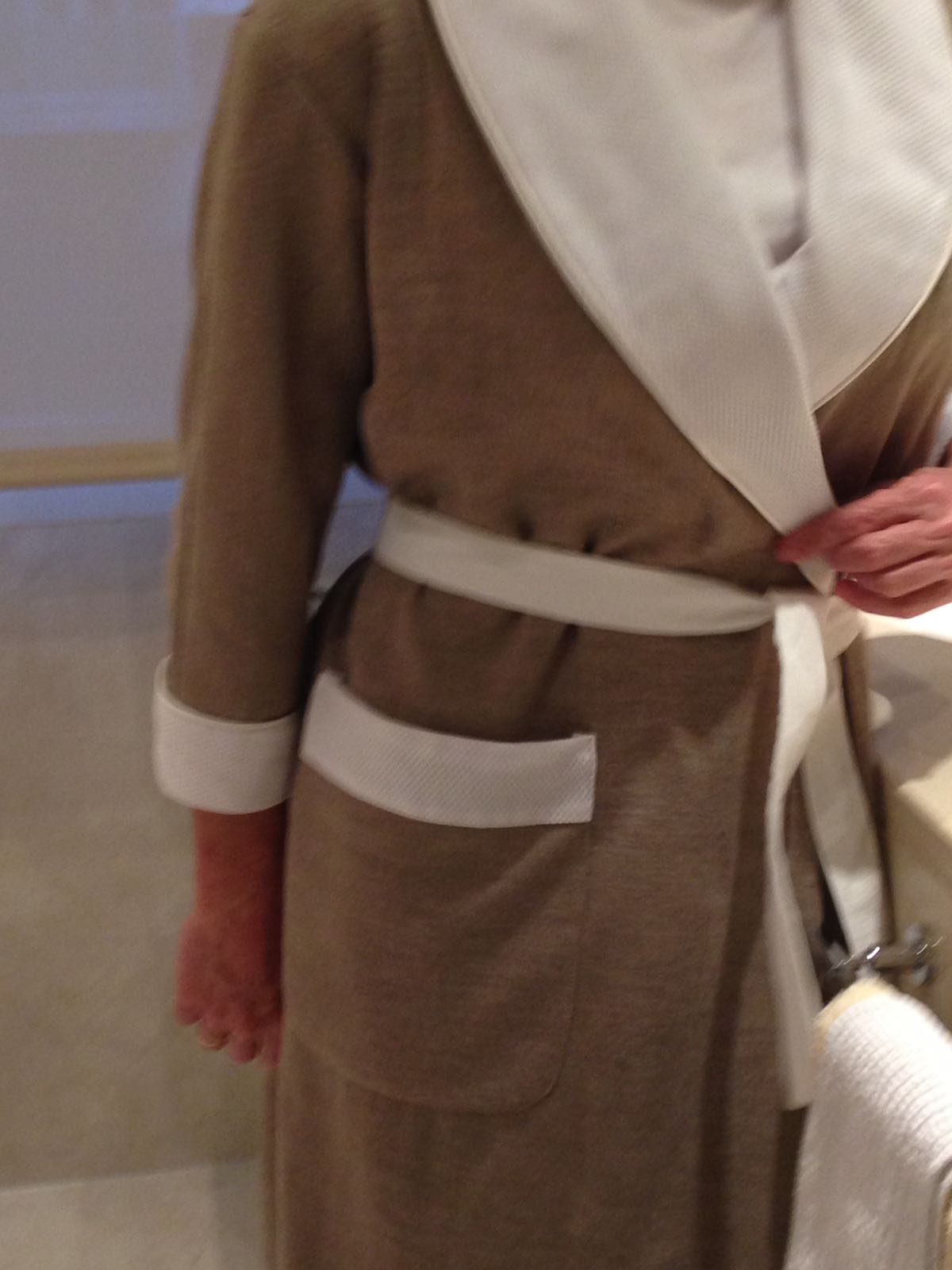 Bata de señora realizada en punto en tono beige y detalles en piqué HOME&HOPE MADRID
