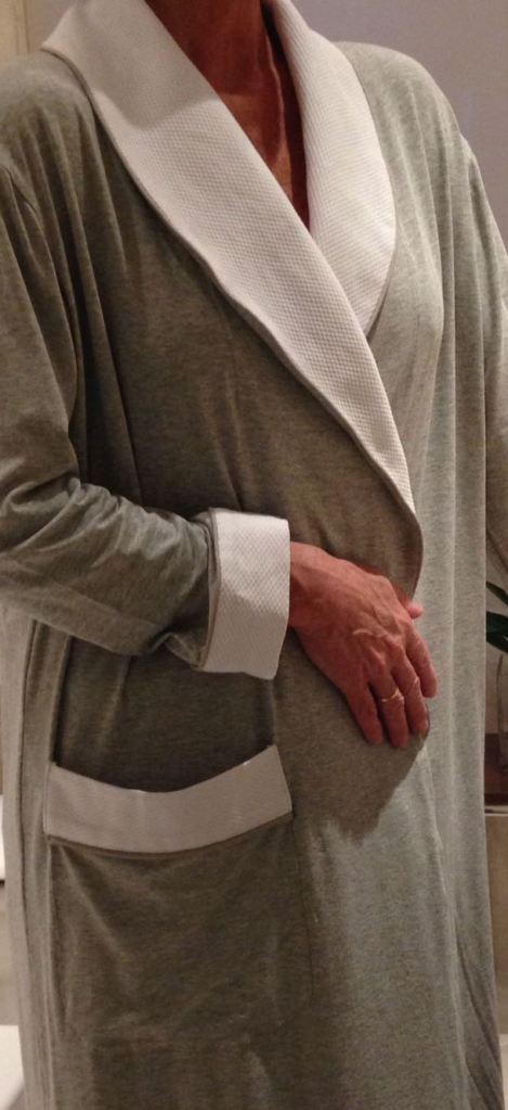 bata gris piqué blanco HOME&HOPE MADRID